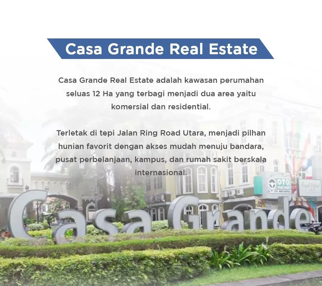 Casa Grande adalah kawasan perumahan seluas 12 Ha yang memiliki 4 cluster yaitu Valencia, Andalusia, Barcelona, Catalonia. Memiliki Clubhouse dengan fasilitas kolam renang, badminton indoor hall, basket indoor hall, convention center, wedding hall, tennis court, mini cafe.